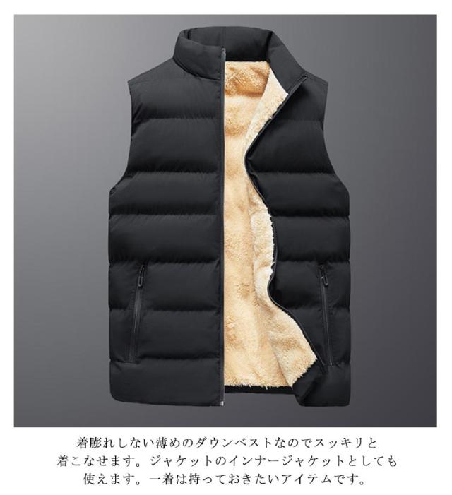 裏起毛ベスト ゴルフ アウター ダウンベスト ダウンジャケット 中綿ベスト インナーダウンベスト メンズ 大きいサイズ 防寒 保温 軽量 ジップアップパーカー 裏ボア ビジネス インナー 秋冬 あったか 釣り チョッキ ノースリーブ 黒 送料無料