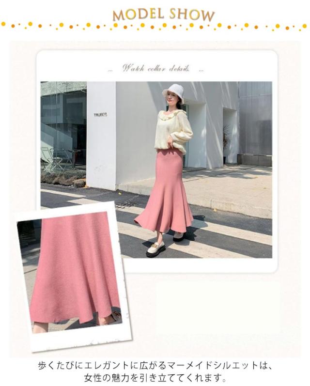 マーメイドスカート レディース ニットスカート ロングスカート マキシ丈 スカート フリル フリルスカート ニット素材 タイトスカート ストレッチ ハイウエスト カジュアル 暖か 着痩せ 美脚 通勤 キレイめ 無地 秋冬 おしゃれ 送料無料