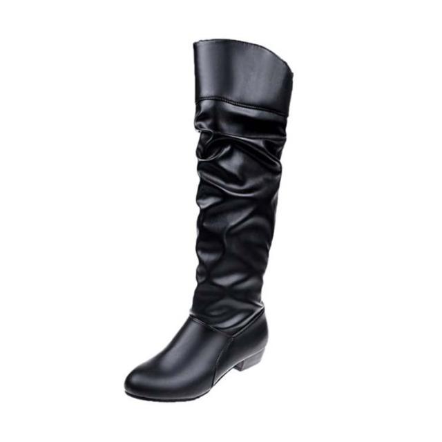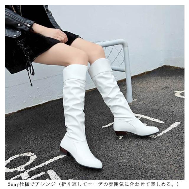 レディース 2wayブーツ ニーハイ ブーツ ロングブーツ ニーハイブーツ ルーズブーツ ローヒール 折り返し 大きいサイズ 痛くない 歩きやすい 冬 靴 防寒 カジュアル ブラック