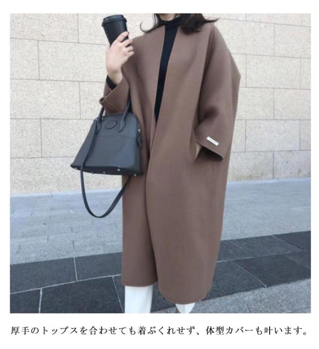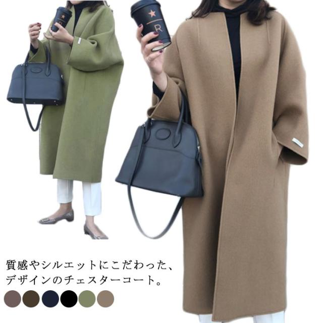 6色 チェスターコート レディース 秋冬 ロングコート チェスターロングコート 韓国 BIGコート コート アウター ノーカラー チェスター ロング丈 ゆったり 体型カバー 大人 上品 オフィス きれいめ