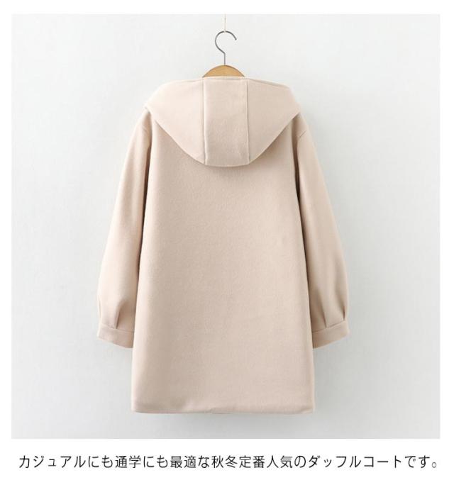 | 冬の制服コーデに欠かせないスクールコート! 保温力の高い中綿キルト素材を裏地に使用しているので暖かさをキープ。 フードや大きめボタンがかわいいダッフルコート! ダッフルコートは、トグル(留め具)をループにかけて留めるタイプとなっているので、忙しい朝でもさっと羽織ってしっかり防寒できます。 ヒップもすっぽりカバーするロング丈で合わせるボトムスを選ばず、カジュアルからガーリーまで幅広いコーデに活躍! 制服の上から羽織れる、冬のおしゃれに欠かせないコートです。 カジュアルにも通学にも最適な秋冬定番人気のダッフルコートです。 | |