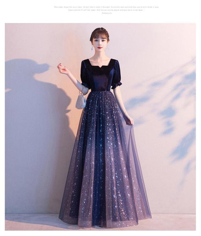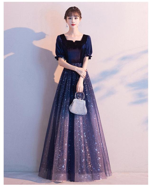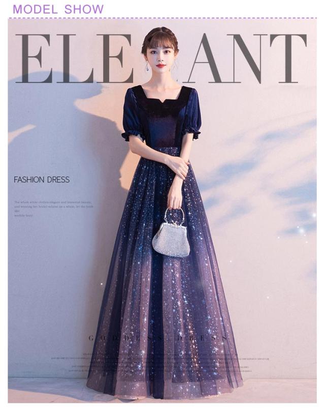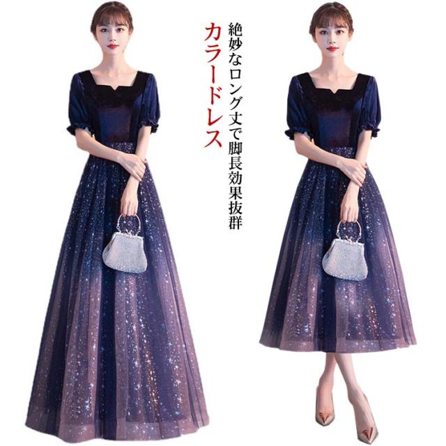 キラキラ カラードレス パーティードレス ロングドレス ワンピース 半袖 五分袖 星空 グラデーション Aライン ステージドレス ロング丈 ワンピースドレス 成人式 同窓会 忘年会 ウエディング 花嫁 ピアノ 発表会 演奏会 二次会 結婚式
