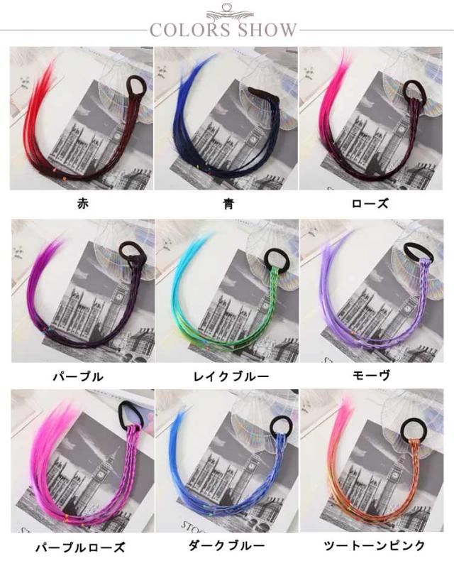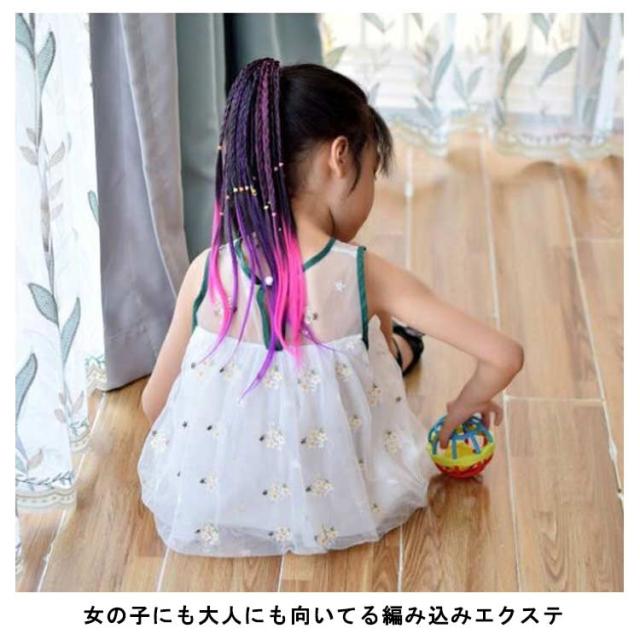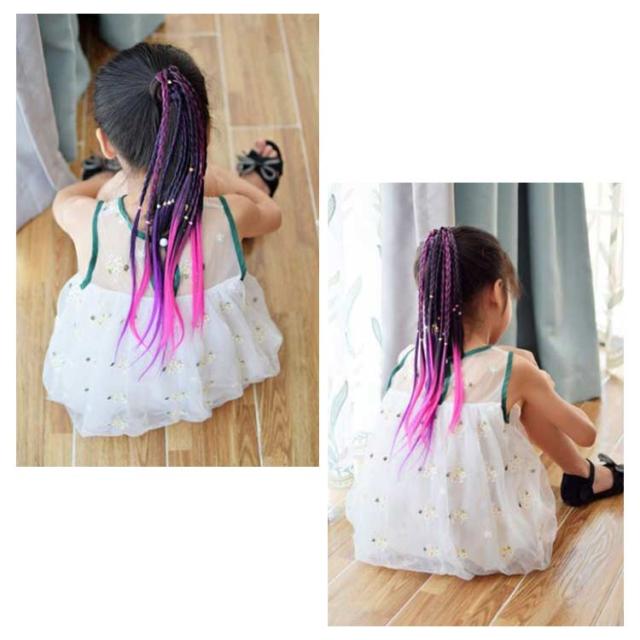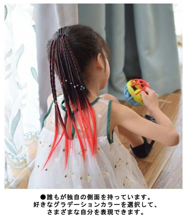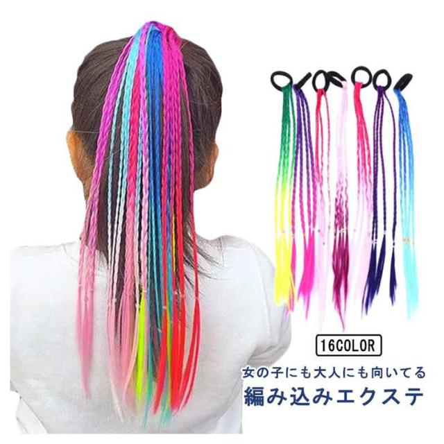 三つ編み エクステ キッズ 子供 編み込み 16色 2点セット 女の子 グラデーション髪 髪の毛 付け髪 ダンス ヘアアクセサリー エクステンション カラフル ウィッグ ヒップホップ レゲエ ダンサー 髪型 舞台 ダンス イベント