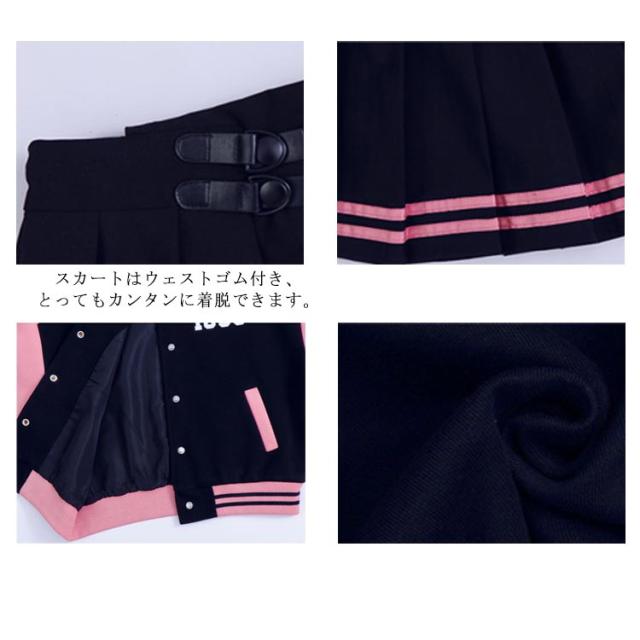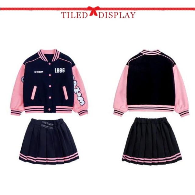 スタジャン プリーツスカート セットアップ 子供服 スウェット ジャケット ジャンパー ブルゾン アウター 上着 刺繍 ワッペン ショートスカート ラインスカート 野球服 韓国子供服 上下セット ダンス衣装 女の子 子ども