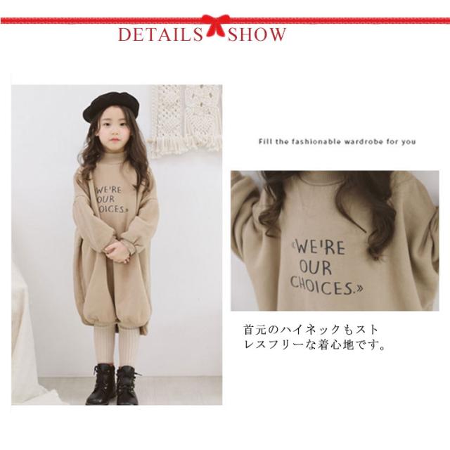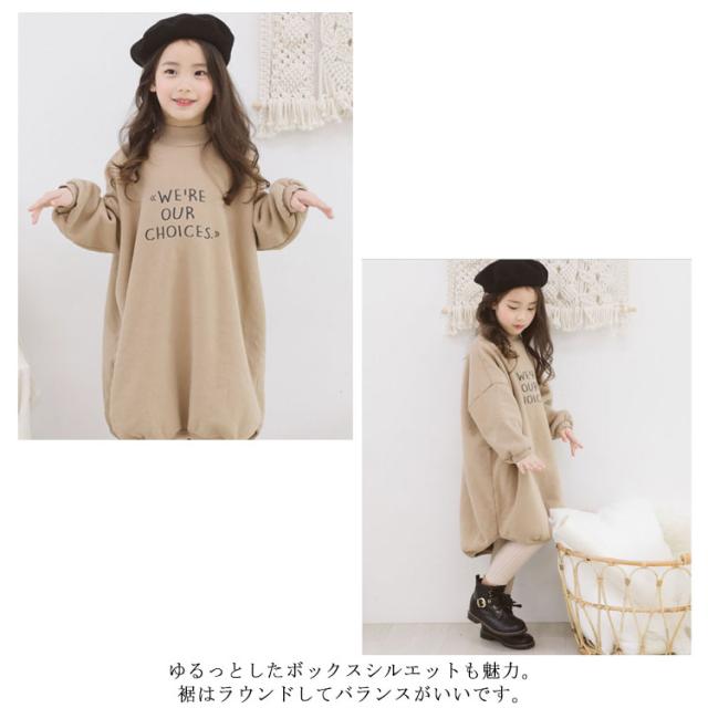 裏シャギーワンピース 裏起毛 スウェット パーカー チュニック 長袖 ハイネック プルパーカー 秋服 パイル起毛 トップス 無地 シンプル 女の子 女児 ガールズ スエット プルオーバー ゆったり 大人カジュアル 抜け感
