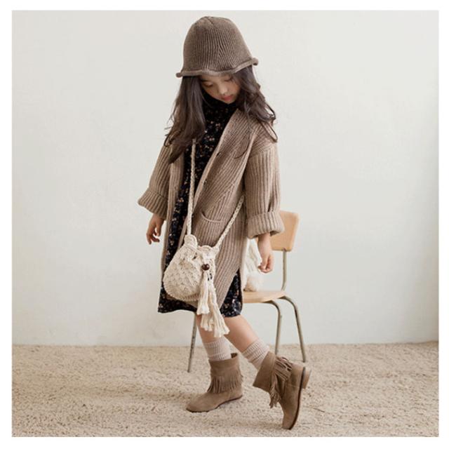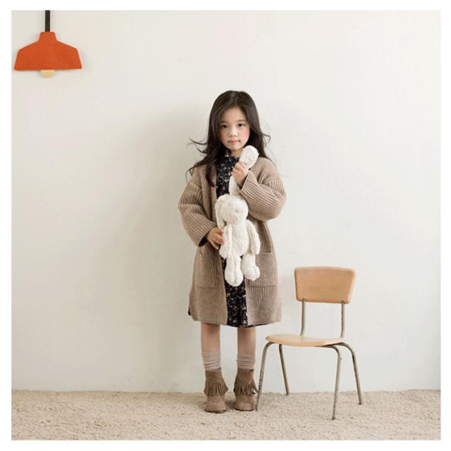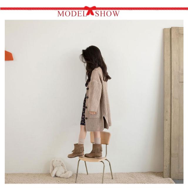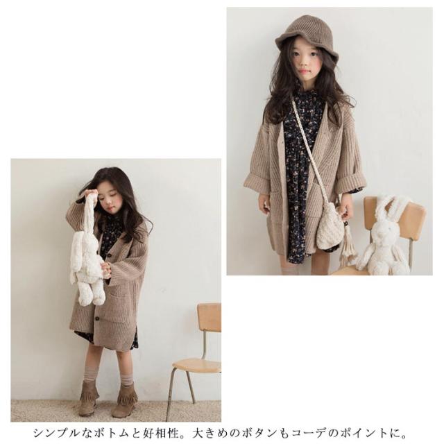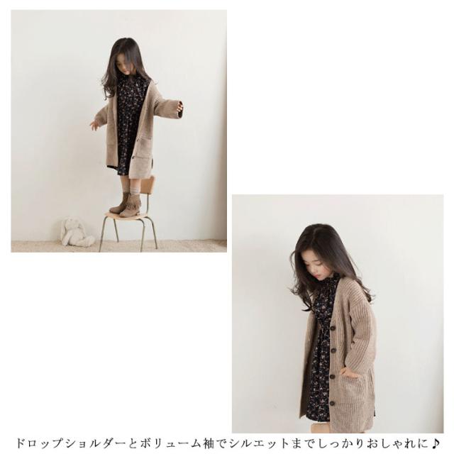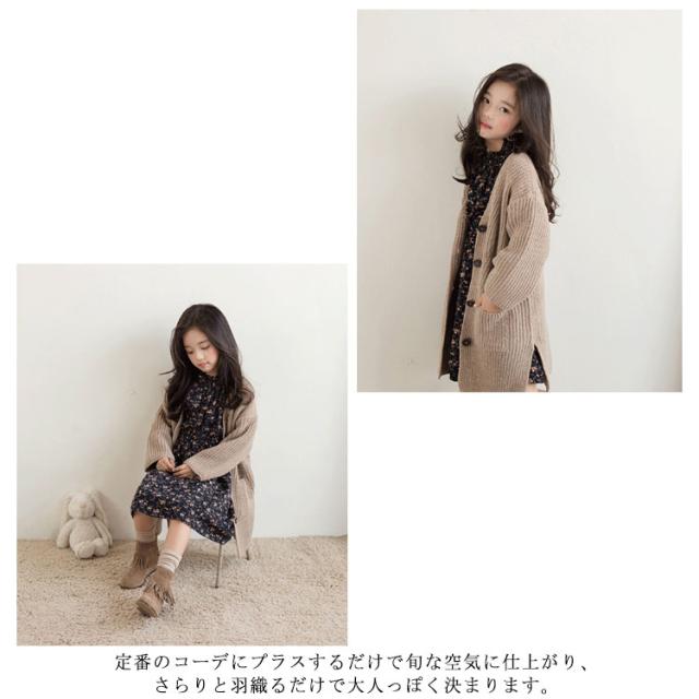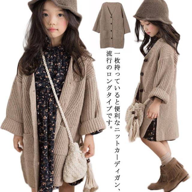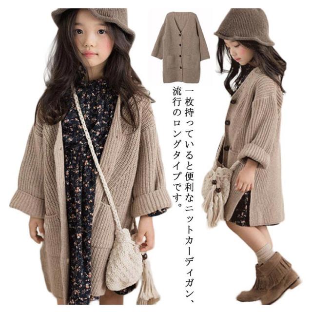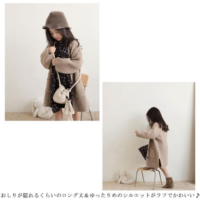 ロングカーディガン キッズ カーディガン 長袖 子供服 サイドスリット ポケット付き ロング丈 トップス ニットカーデ 前開き 無地 長袖 はおり 羽織り カーディガン 韓国子供服 アウター 女の子 可愛い あったか