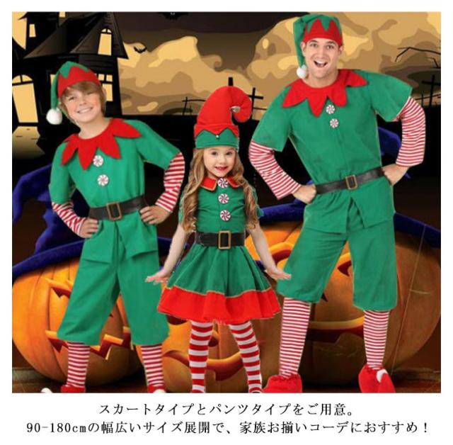 送料無料 クリスマス クリスマスツリー サンタ コスチューム 家族 お揃い 男性 女性 子供 クリスマス 衣装 サンタコス 仮装 子供服 コスチューム 帽子付き スカートセット パンツセット コスプレ衣装 ファミリー イベント