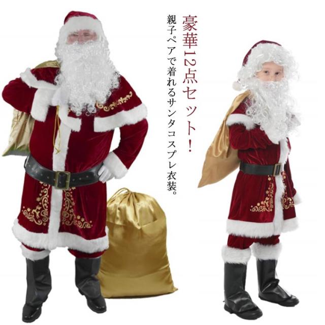 【送料無料】 12点セット サンタ コスプレ クリスマス コスプレ衣装 サンタ服 メンズ 大人用 子供用 男の子 クリスマスサンタ コスチューム 親子ペア 家族お揃い サンタコス サンタ帽子 上着 ズボン ヒゲ クリスマスサンタコス 仮装 パーティー イベント 忘年会 送料無料