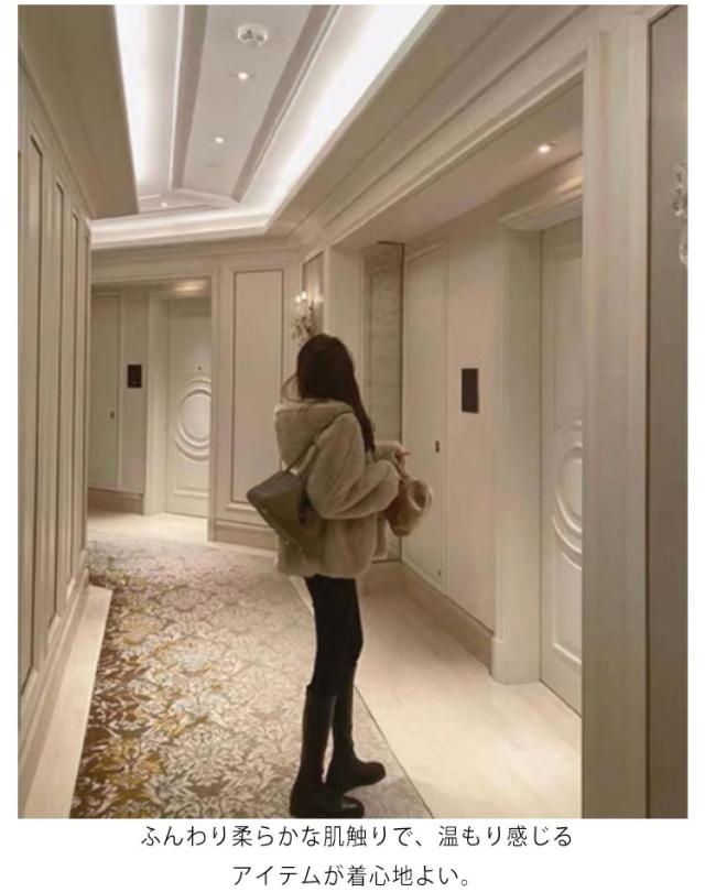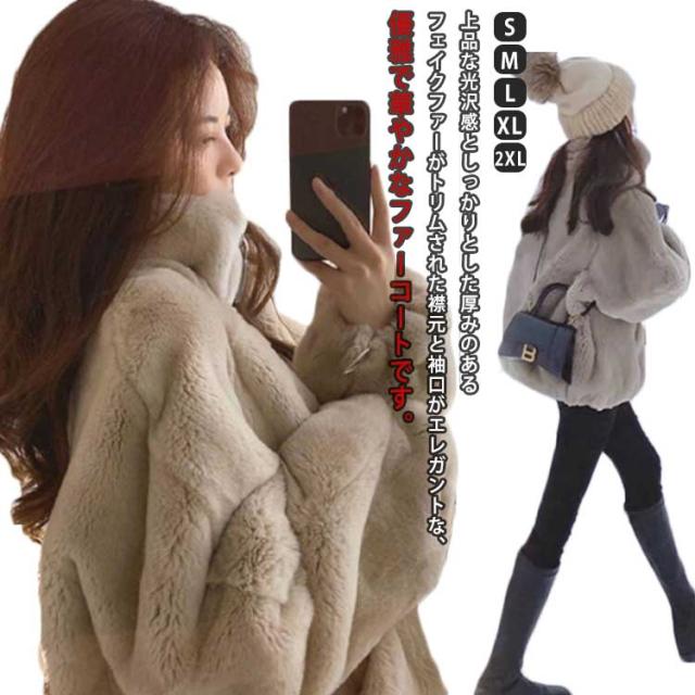 フェイクファー コート レディース エコファー アウター ジャケット ふわふわ モコモココート 春秋冬 立ち襟 フード付き ボアパーカー 羽織 軽い ブルゾン 防寒 ボリューム袖 ジュアル おしゃれ