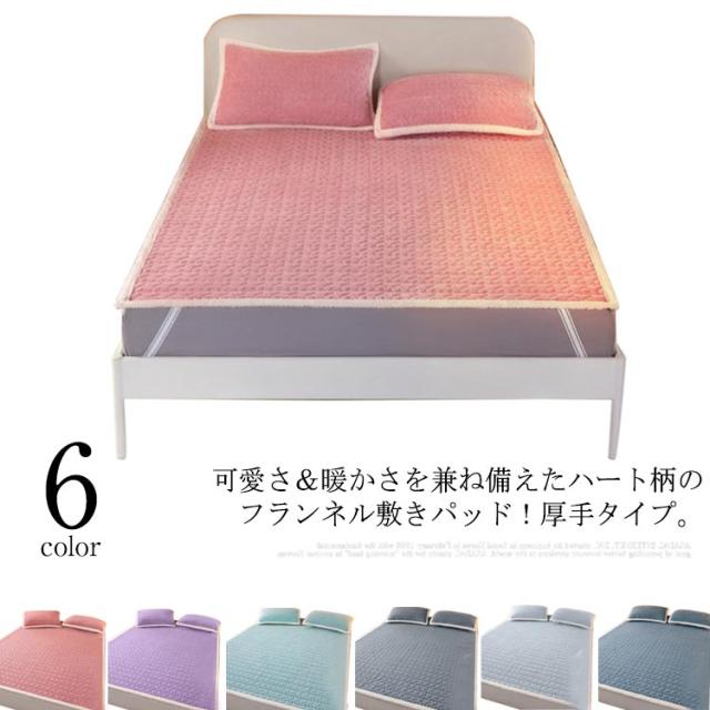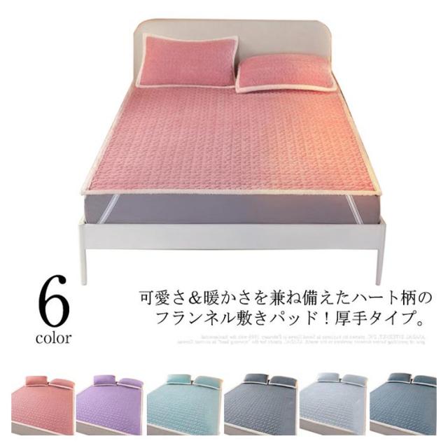 敷きパッド あったか 冬 フランネル ふんわり ハート柄 シングル 90×190cm ベッドパッド フランネル 敷きパッド なめらか マイクロファイバー 厚手 蓄熱保温 暖かい 韓国風 寝具 冬用 丸洗い 無地 男女兼用