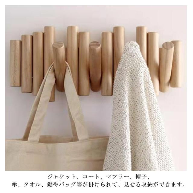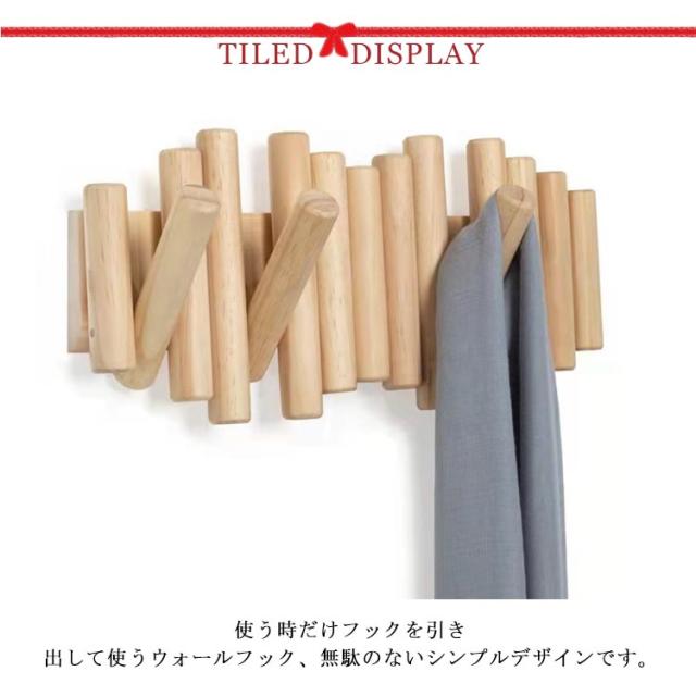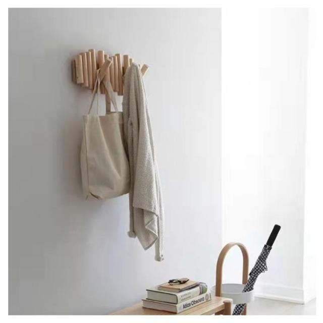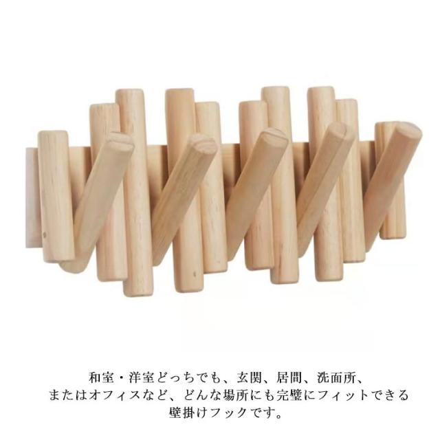 | 木製の折りたたみ式の壁掛けフックは玄関、台所、浴室、寝間などの空間に、限られたスペースをより有効に利用できます。 使う時だけフックを引き出して使うウォールフック、無駄のないシンプルデザインです。 使わないときは木工品のように壁にかけます。 和室・洋室どっちでも、玄関、居間、洗面所、またはオフィスなど、どんな場所にも完璧にフィットできる壁掛けフックです。 ジャケット、コート、マフラー、帽子、傘、タオル、鍵やバッグ等が掛けられて、見せる収納ができます。 | |