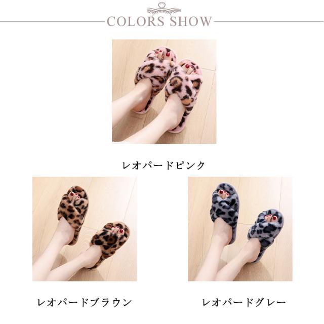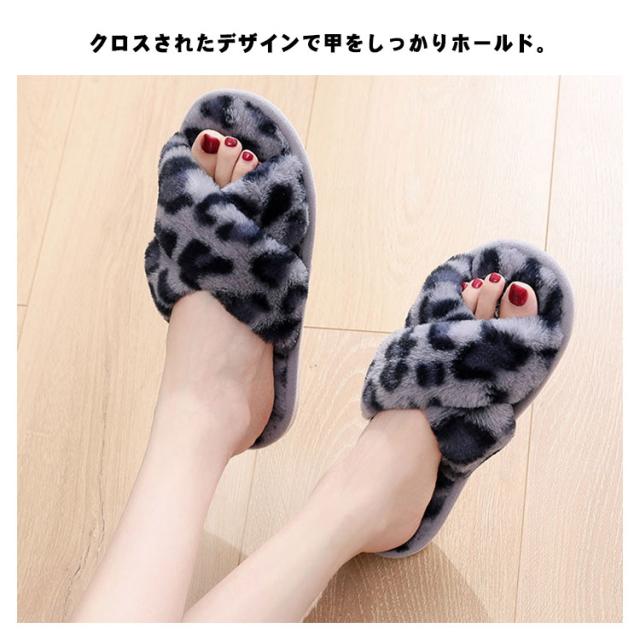 ヒョウ柄 ファースリッパ ファーサンダル レディース 靴 ルームシューズ ルームサンダル 秋冬 シューズ スリッパ フェイクファー もこもこ レオパード 柄 かわいい 室内スリッパ 暖かい ふわふわ 防寒