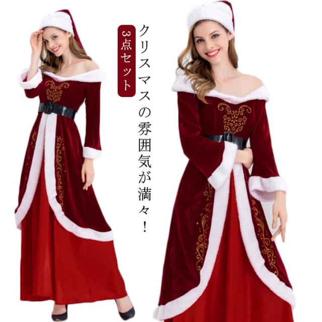 3点セット サンタ コスプレ サンタクロース コスチューム 衣装 レディース 大きいサイズ 大人用 クリスマス衣装 パーティー