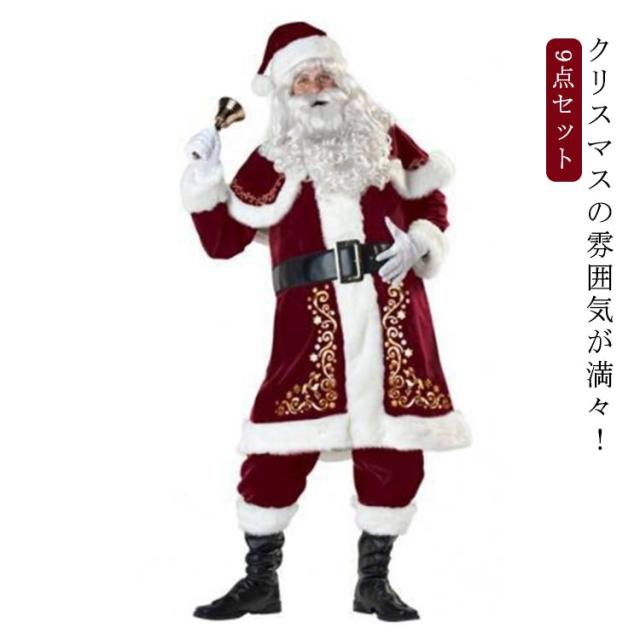 9点セット サンタ コスプレ クリスマス コスプレ サンタクロース コスプレ セット 大人用 クリスマス衣装 メンズサンタクロース サンタ帽子 サンタウィッグ メンズ サンタ コスチューム サンタコスプレ衣装 クリスマス