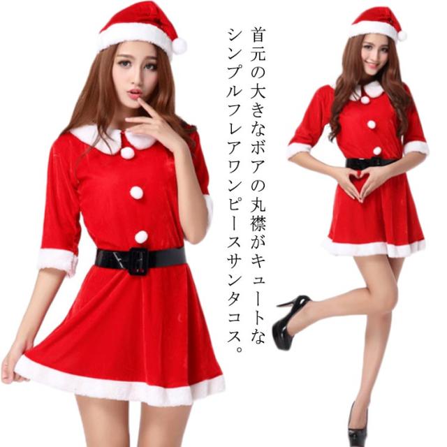 サンタ コスプレ 襟付き フレア ワンピース サンタ 3点セット サンタコス クリスマス コスプレ サンタ 衣装 サンタ コスプレ レディース コスチューム パーティー 大きいサイズ 衣装 仮装 可愛い ハロウィン