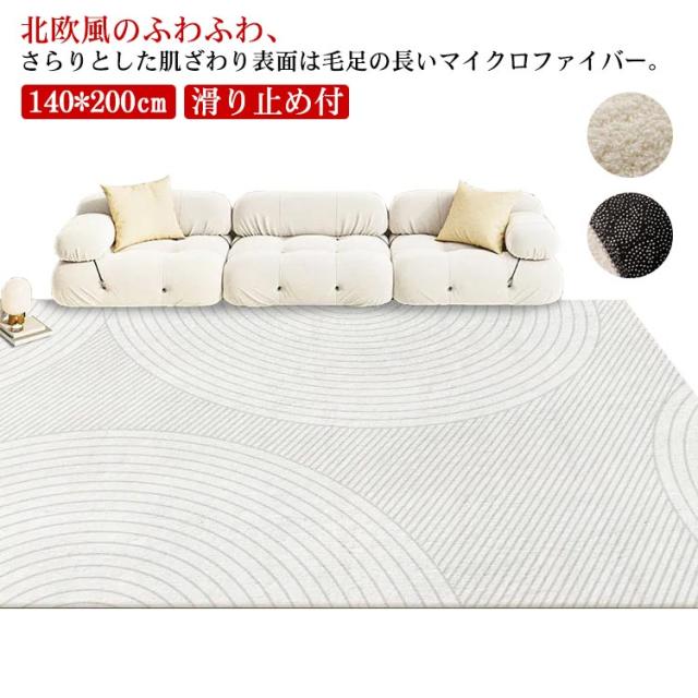 ラグ 140*200cm ラグマット カーペット 厚手 シャギー 幾何学柄 モダンアート 北欧 おしゃれ 洗える 滑り止め付 大きめ オールシーズン 春夏秋冬 絨毯 じゅうたん マイクロファイバー リビング ダイニング 寝室