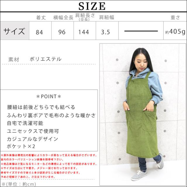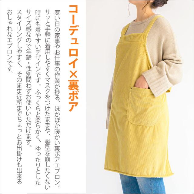 平日12時 平日祝9時即出荷 エプロン おしゃれ 暖かい レディース メンズ 裏ボア 冬 コーデュロイ ワンピース ロング バッククロス 前結び 厚手 防寒 裏起毛 ボア フリース 保育士 大きいサイズ 介護士 北欧 あったか チュニック エプロン 無地 男性 女性 園芸 プレゼント