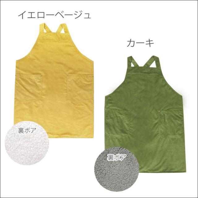 ・北欧風のコーデュロイともこもこあったかボアのバッククロスエプロン。
