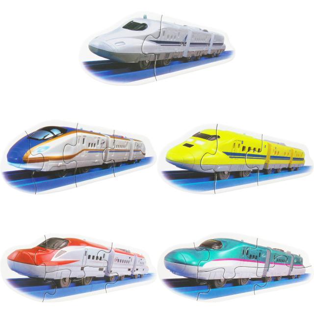 人気のプラレールのパズルです。N700A新幹線、E5系新幹線はやぶさ、E6系新幹線こまち、E7系新幹線かがやき、923形ドクターイエローの5種類のパズルで遊べます。パズルデビューするお子さま向けの少し大きめのピースで、取り組みやすいパズルです。