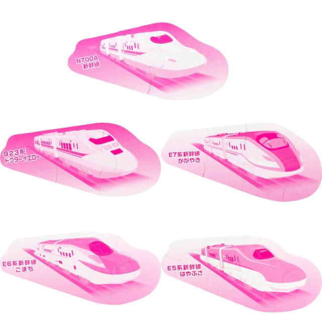 ●N700A新幹線、E5系新幹線はやぶさ、E6系新幹線こまち、E7系新幹線かがやき、923形ドクターイエローの5種類のパズルで遊べます。