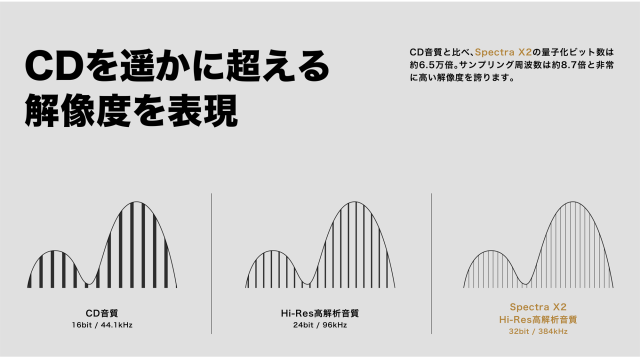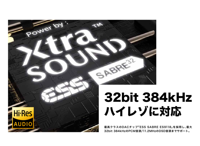 最大32bit 384kHz PCM /11.2MHz DSD Hi-Res・オーディオに対応