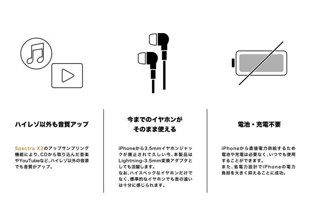 ライトニングから3.5mmイヤホンジャックへのイヤホン変換ケーブルとして使用可能