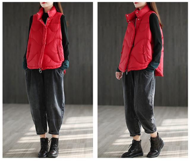 ◎暖かみがあり軽い着心地のベストを着ぶくれ感を抑えたすっきりシルエットでおつくりしました。
