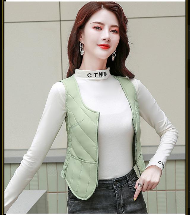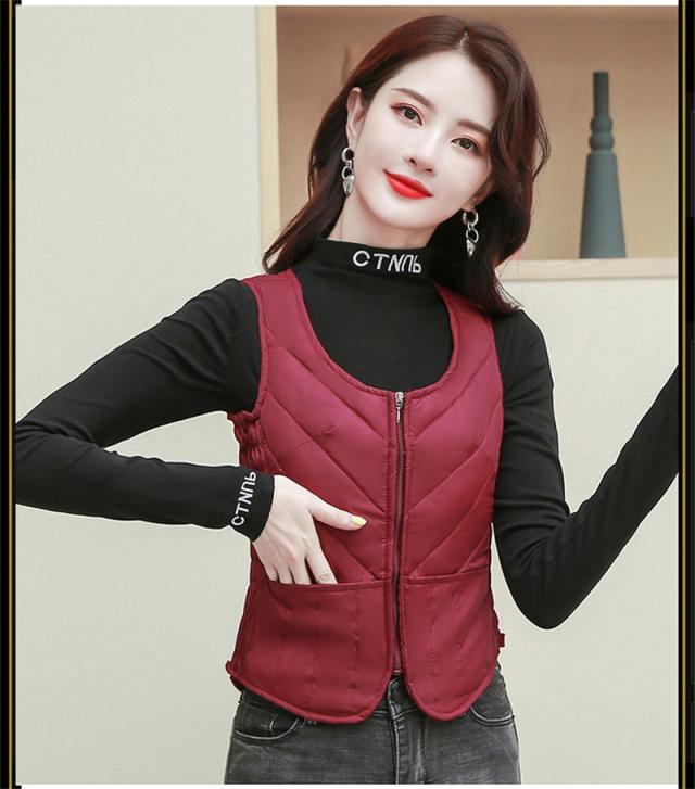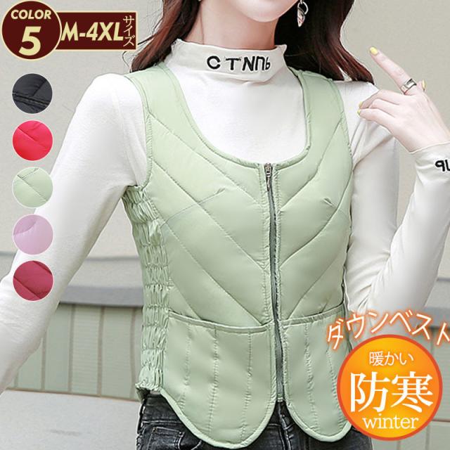 ダウンベスト レディース ライトダウン ショート丈 ライナー インナーダウン アウター Uネック 薄手 大きいサイズ 着痩 無地