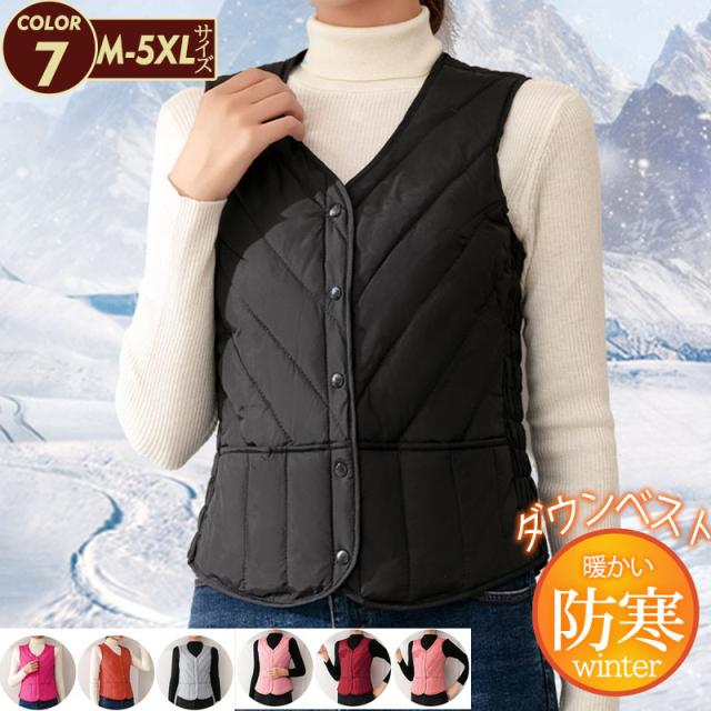 ダウンベスト レディース ライトダウン ショート丈 キルティング ライナー インナー アウター Vネック 薄手 大きいサイズ 着痩