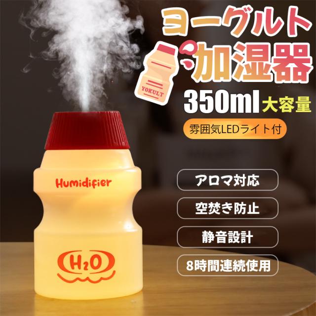 加湿器 ヨーグルト 卓上 アロマ対応 LEDライト 超音波式 350ML コンパクト 静音運転 空焚き防止 USB給電 お手入れ簡単 乾燥 花粉症対策 車用 部屋 オフィス用 クリスマス 誕生日 ギフト