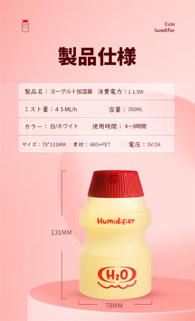 【ヨーグルト型 卓上加湿器】超音波式加湿器は自然に快適なナノミストを生成し、皮膚に浸透して、乾燥や肌荒れを防ぐ、女性にはとても大切な美肌効果があります。そして空気を浄化できるし、風邪や花粉症などの予防にも役立ちます。いつでも快適に過ごせる、ゆったりとした室内環境を作りましょう。