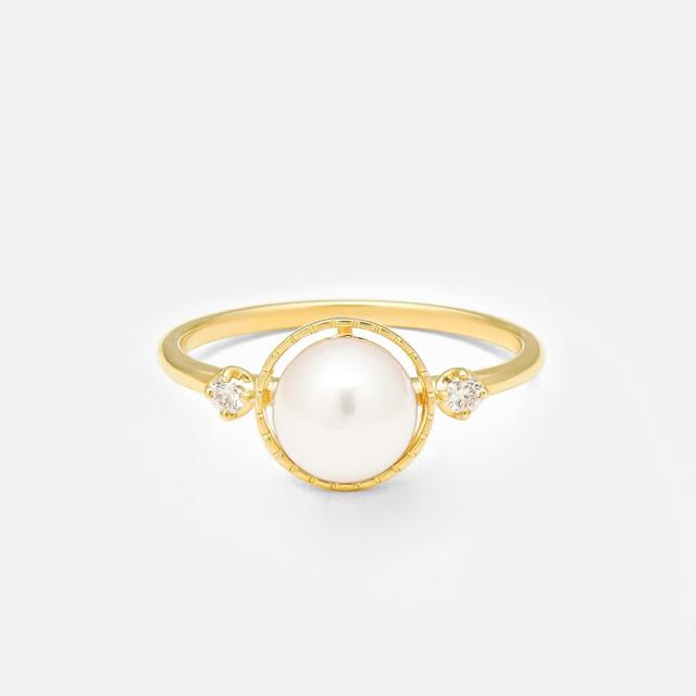あこや真珠をイエローゴールドで包み込んだクラシカルなデザインのリング。