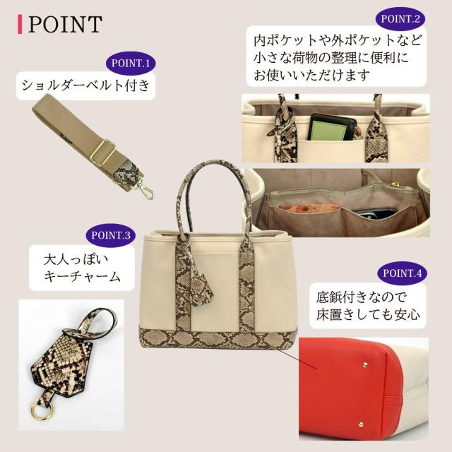 通年使えるキャンバス素材が使い勝手の良いトートバッグ。