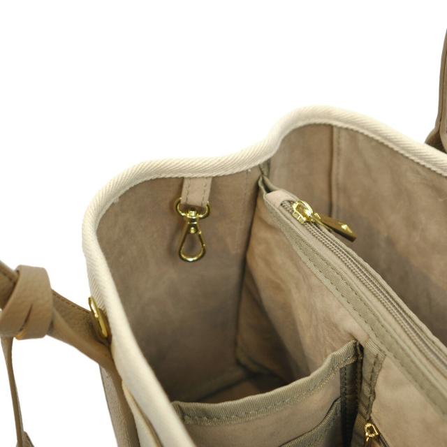 【ショルダー付キャンバス×合皮】cachecache ショルダー付きパーテーションキャンバストートL