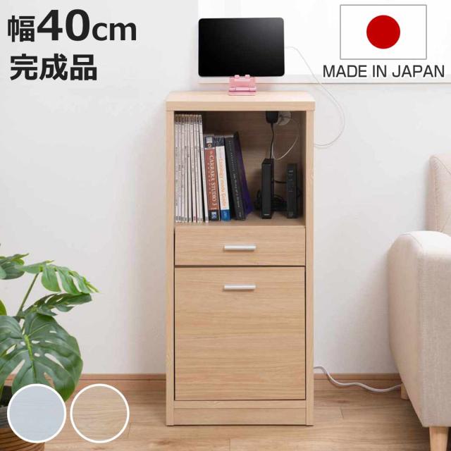 カウンター下収納 幅40cm オープンタイプ 引出し付 日本製 完成品 ( カウンター下 リビング 収納 キッチン収納 収納棚 モダンナチュラル 薄型 本棚 ディスプレイ 引出し ホワイトウォッシュ ナチュラル おしゃれ )