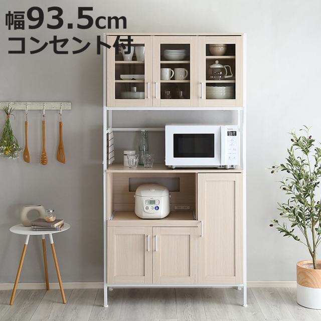 食器棚 幅93.5cm ワイド ハイタイプ 北欧調 スチールフレーム ( レンジラック ラック キッチン 収納 家電収納 台所収納 キッチン収納 シンプル コンセント付 可動棚 )