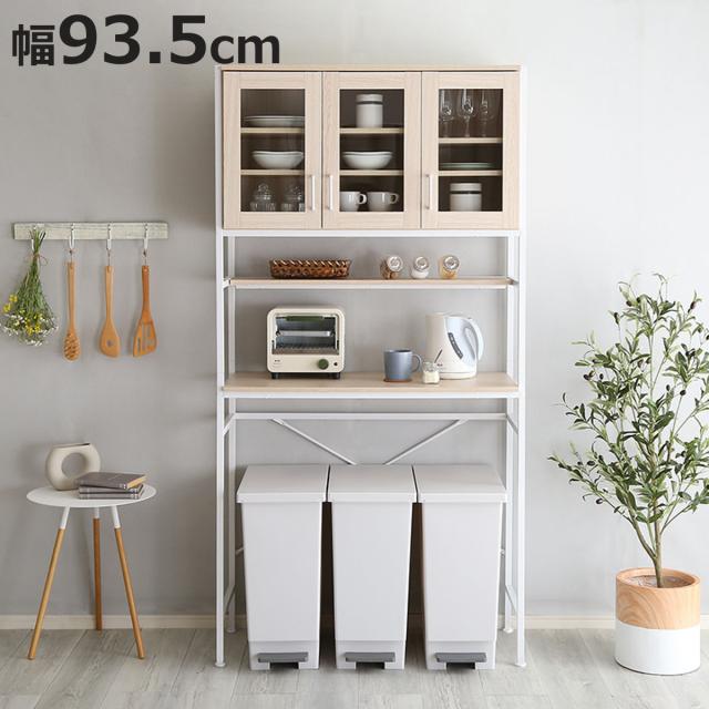ゴミ箱上ラック 幅93.5cm ワイドタイプ 北欧調 スチールフレーム ( ゴミ箱上収納 収納 ダストボックス ごみ箱 ラック 食器棚 家電収納 台所収納 キッチン収納 シンプル 可動棚 )