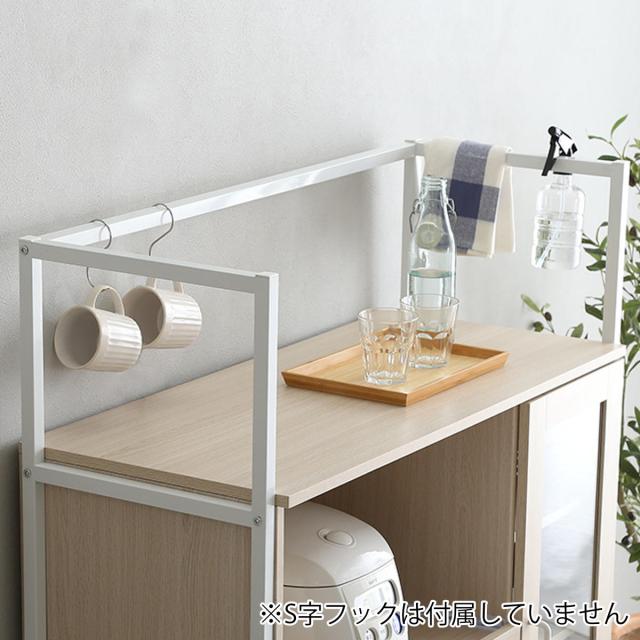 天板部分はレンジやトースターも置けます。調理の準備などに使いやすい高さ約91.5cmで、作業スペースとしても便利です。