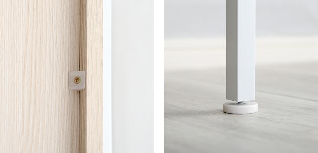 | 揺れを抑える背板ストッパー付き 背板のバタつきを無くし、本体の揺れを抑える背板ストッパー付きです。 | ガタつき防止アジャスター付き ガタつきを軽減するアジャスター付きです。 |