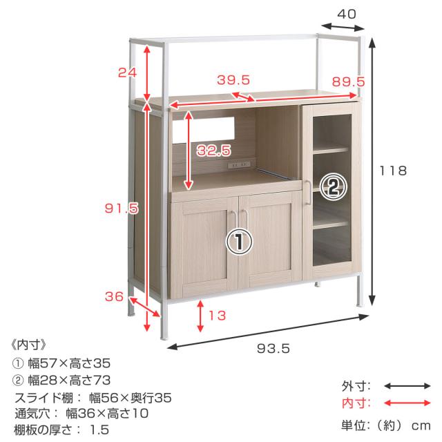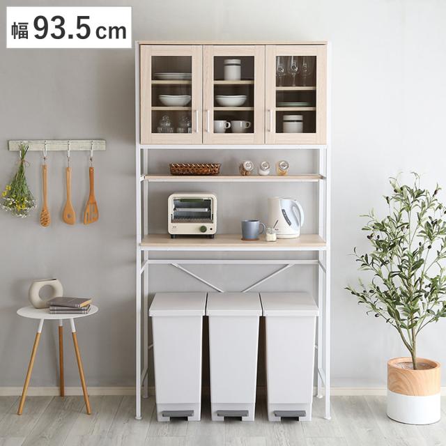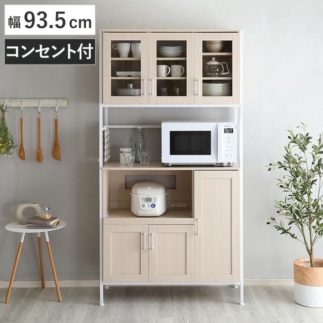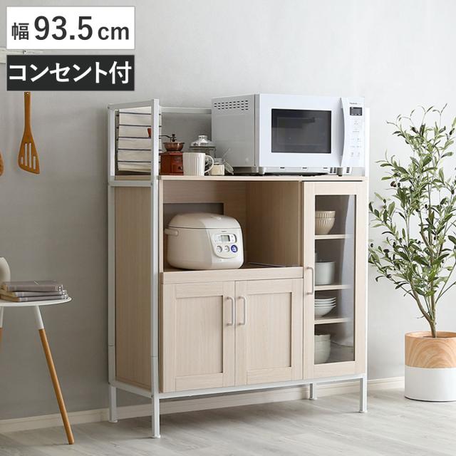 レンジ台 幅93.5cm ワイドタイプ 北欧調 スチールフレーム ( レンジラック 食器棚 ラック キッチン 収納 ワイド 家電収納 台所収納 キッチン収納 シンプル コンセント付 可動棚 )