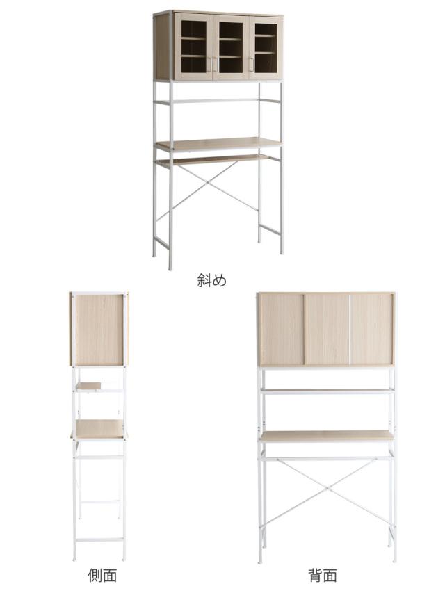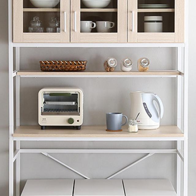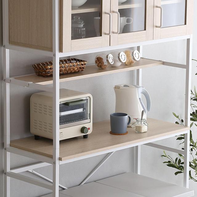 中段はフレーム構造で熱や蒸気がこもりにくく、レンジやトースターなどのキッチン家電の収納場所にも使えます。また、調理の準備などで使いやすい高さ約86cmで、作業スペースとしても便利です。