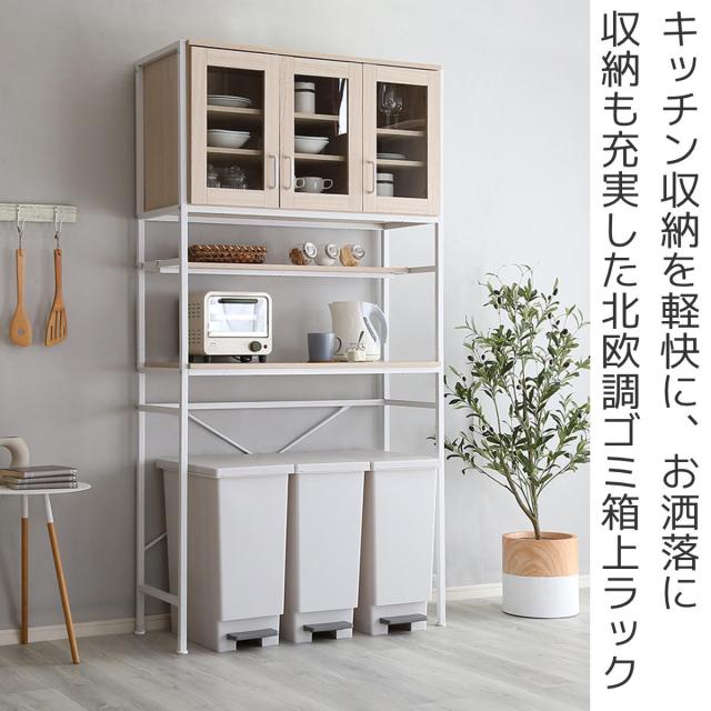 ゴミ箱上ラック 幅93.5cm ワイドタイプ 北欧調 スチールフレーム ( ゴミ箱上収納 収納 ダストボックス ごみ箱 ラック 食器棚 家電収納 台所収納 キッチン収納 シンプル 可動棚 )