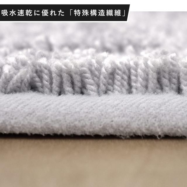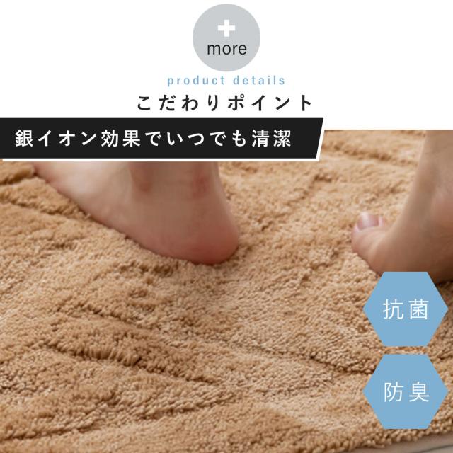 洗っても効果が続く抗菌防臭加工付きで、マット上の菌の増殖を抑制するので、いつまでも衛生的にお使いいただけます。