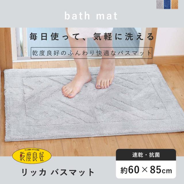 バスマット 乾度良好 リッカ 60×85cm 大判 速乾 ( お風呂マット 足拭きマット お風呂 バスグッズ 浴室マット 玄関マット 吸水 抗菌 防臭 洗濯OK シンプル )