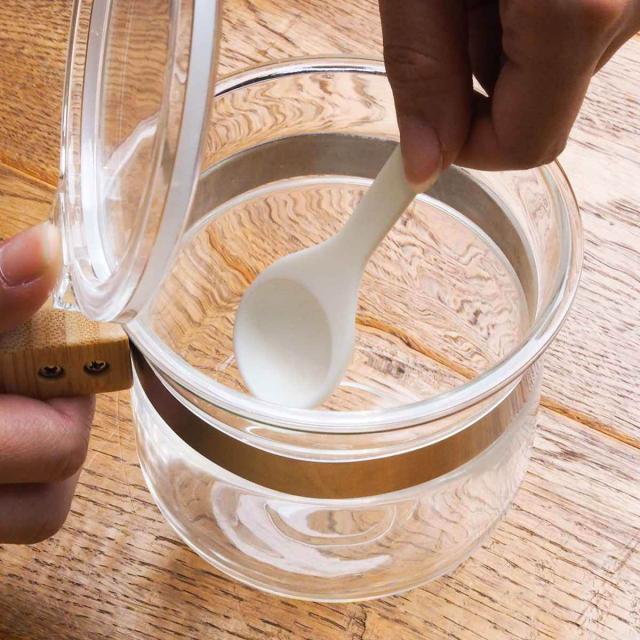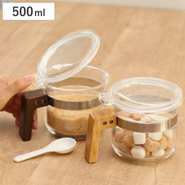 保存容器 500ml パウダーポット バンブー ( 調味料入れ プラスチック 0.5L 竹 保存 容器 ケース スパイスボトル 調味料ポット 調味料容器 塩 砂糖 小さじ1 スプーン付き )