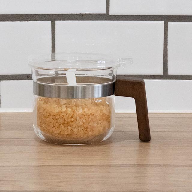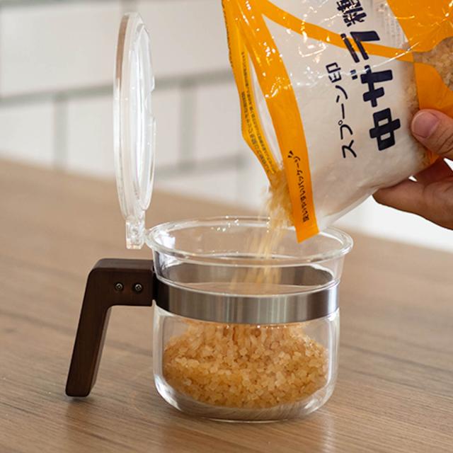 砂糖や塩など調味料を使いたい時に、片手でパッと開けることができる、樹脂製パウダーポットです。クリアなプラスチックにステンレスとバンブーを組み合わせたデザインは、シンプルだけど温もりを感じるナチュラルな雰囲気です。
