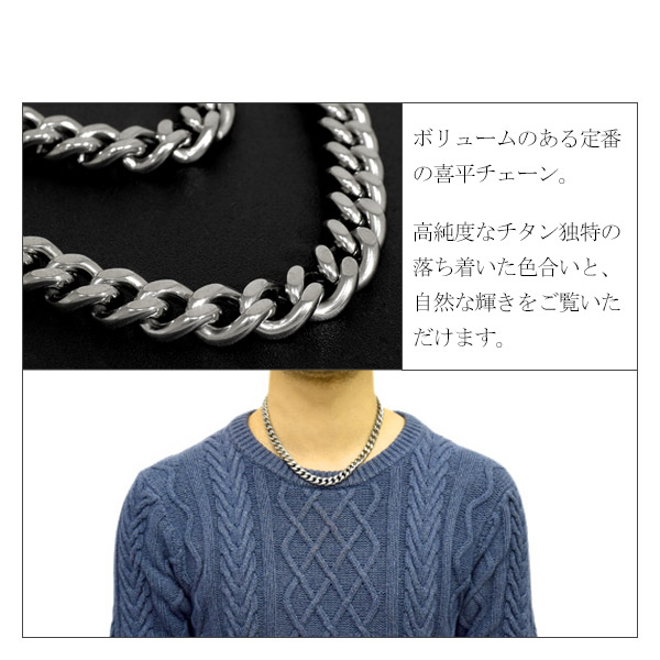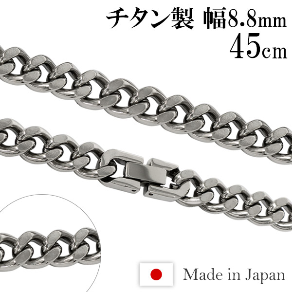 チタンネックレス カット 喜平 幅8.8mm 45cm 日本製 スポーツ 肩こり チタン ネックレス 金属アレルギーフリー チタンチェーン チェーン