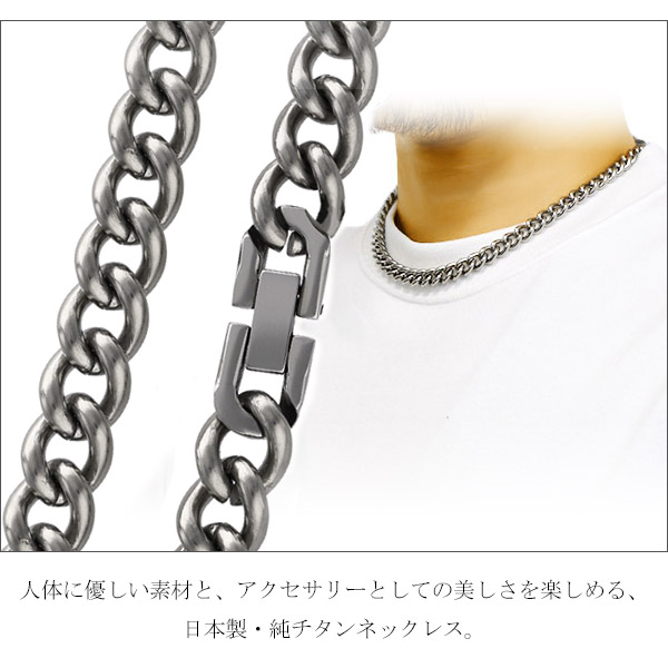 人体に優しい素材と、アクセサリーとしての美しさを楽しめる、日本製・純チタンネックレスです。