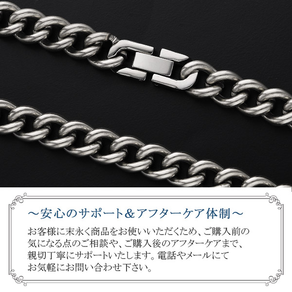肌に触れても悪影響を及ぼすことがないので、金属アレルギーのある方も安心して着用いただけます。直接肌に着けるアクセサリーだからこそこだわりたい。純チタン99.8%!チェーン以外の細かなパーツも全て純チタン製です。