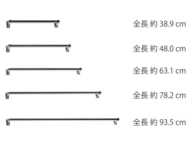 ![]() タオルバー 全長38.9cm | ![]() タオルバー 全長48cm | ![]() タオルバー 全長63.1cm |